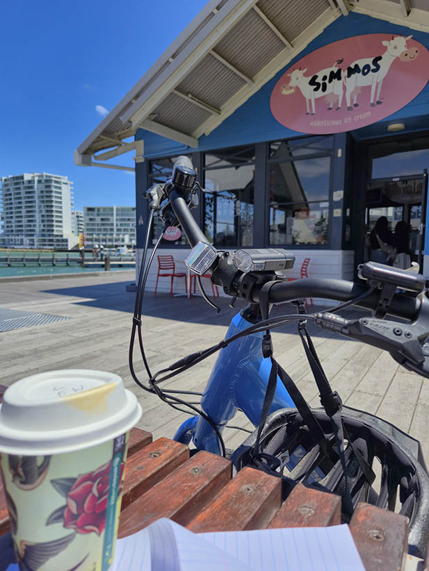 Well, next clue that my internal navigation system was glitching arrived as I wheeled my bike off the platform and out of the station, only to discover a total absence of handy signs saying things like ‘this way to the foreshore’. So, approaching another ‘lucky’ staff member, I asked how to get down to the beach. She looked baffled, then asked then asked in heavily accented English, ‘Mandurah beach?’ Given that we were, after all, in Mandurah I replied that this was indeed the very beach I meant. She looked at me, looked over her shoulder at the train waiting on the platform, turned back and said, “You must go by bus.”